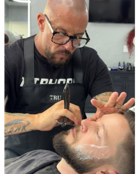 Nothing compares to a traditional straight razor shave. Using hot towels, premium lather, and steady hands, we deliver a close, smooth shave that modern electric tools simply cannot replicate.